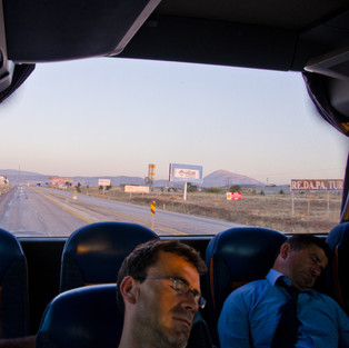 Nous découvrons également le confort insolite qui nous avait été vendu avec les billets : vidéo et wi-fi disait le vendeur ! En effet, vidéo mais en turc et sans sous-titres bien évidemment ! Et la connexion wi-fi n'est en fait disponible sur nos smartphones que lorsque nous entrons dans les gares autoroutières... Ca nous fait sourire et ça nous confirme une chose, c'est que le car est bien un service turc pour les Turcs et que très peu de touristes s'embarquent sur ces machines! Mais nous n'aurions raté cette expérience pour rien au monde ! Surtout le passage de la petite hôtesse avec son vaporisateur d'eau de Cologne, histoire de noyer les couleurs olfactives des uns et des autres dans un parfum commun pacificateur.